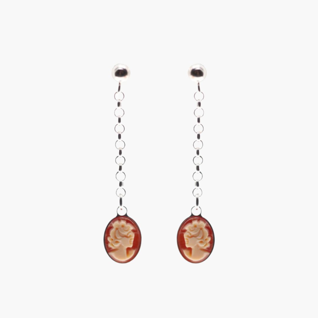Our Cameo Dangle Earrings are post backs with a small beaded detailing attaching the chain to showcase the cameo that drops below.  Experiment for yourself by adding these to any other jewelry accessory you own.  Perfect for stacking or solo!  Noted:  These earrings pair perfectly with antique & period jewelry pieces too.  Simple.  Versatile.