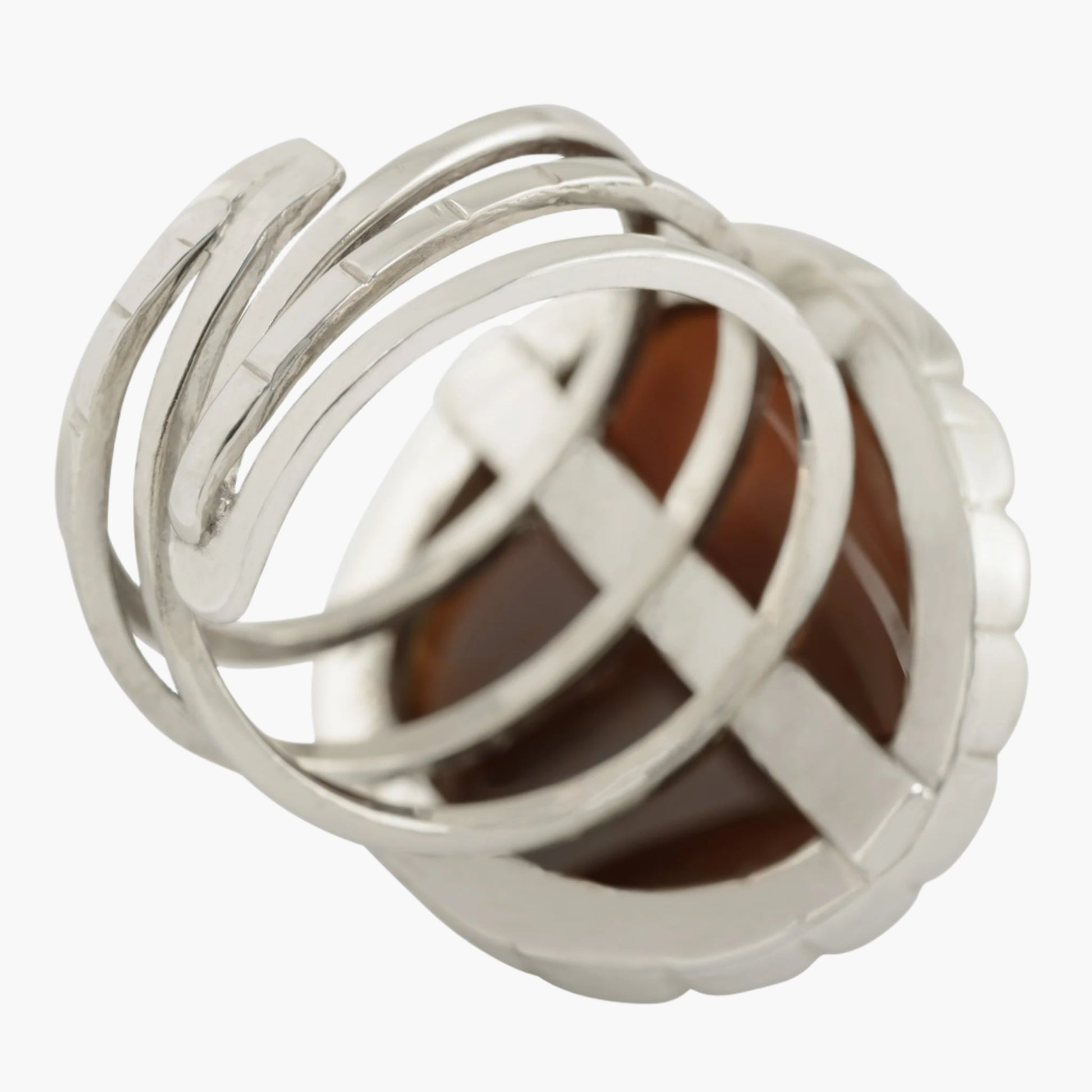 The Apollo with Lyre Cameo Ring, featuring the god of music, poetry, light, and truth in Greek Mythology, is a beautiful and versatile piece imported from Italy. Hand-carved by Italian carver Agostino Centobelli, this ring boasts a medium round relief and a bezel setting.  A special occasion ring or statement piece, this adjustable ring showcases Apollo's role as an intermediary between humans and gods, with his love for music and patronage of the arts.