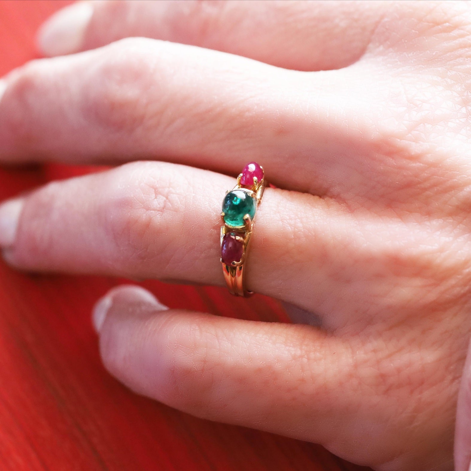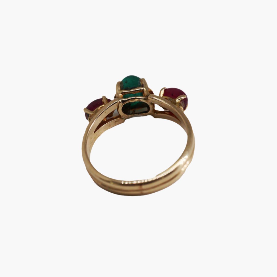 Vintage Emerald Sugarloaf and Ruby Cabochon Ring in 14 karat