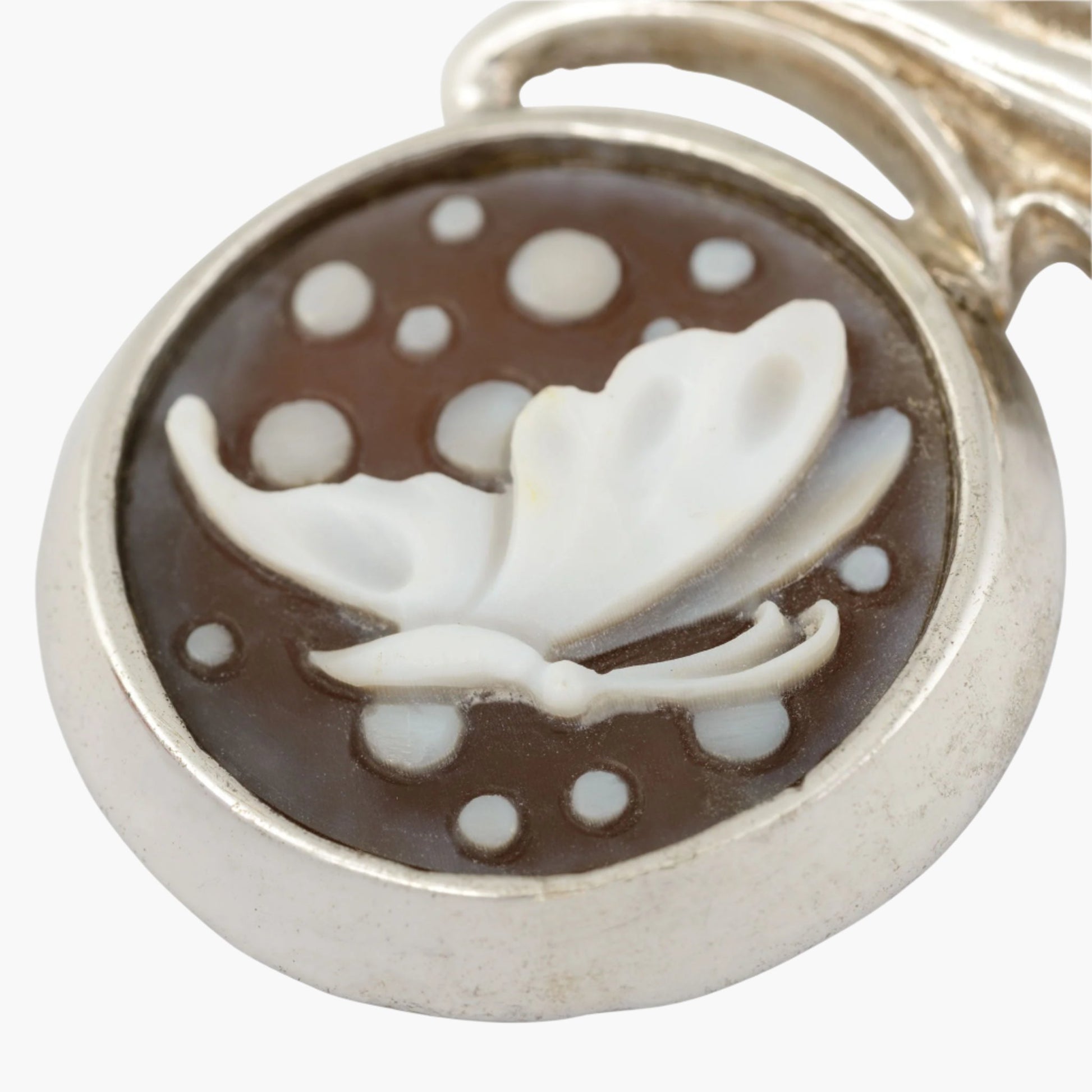 The Silver State Lady with Flowing Hair and Butterfly Cameo Brooch, proudly crafted in Italy, is a stunning tribute to the beauty and resilience of butterflies. With the oldest butterfly fossils dating back approximately 56 million years to the Paleocene period, we recognize and celebrate these remarkable creatures for their elegance, transformative journey, and fragile existence in our world. At Cameo Calamity, we invite you to join us in honoring the butterfly with this exquisite carved cameo brooch—an exceptional piece that pays homage to the butterfly's importance and the ongoing need to protect them. Celebrate the Migration Season! Save the monarch!