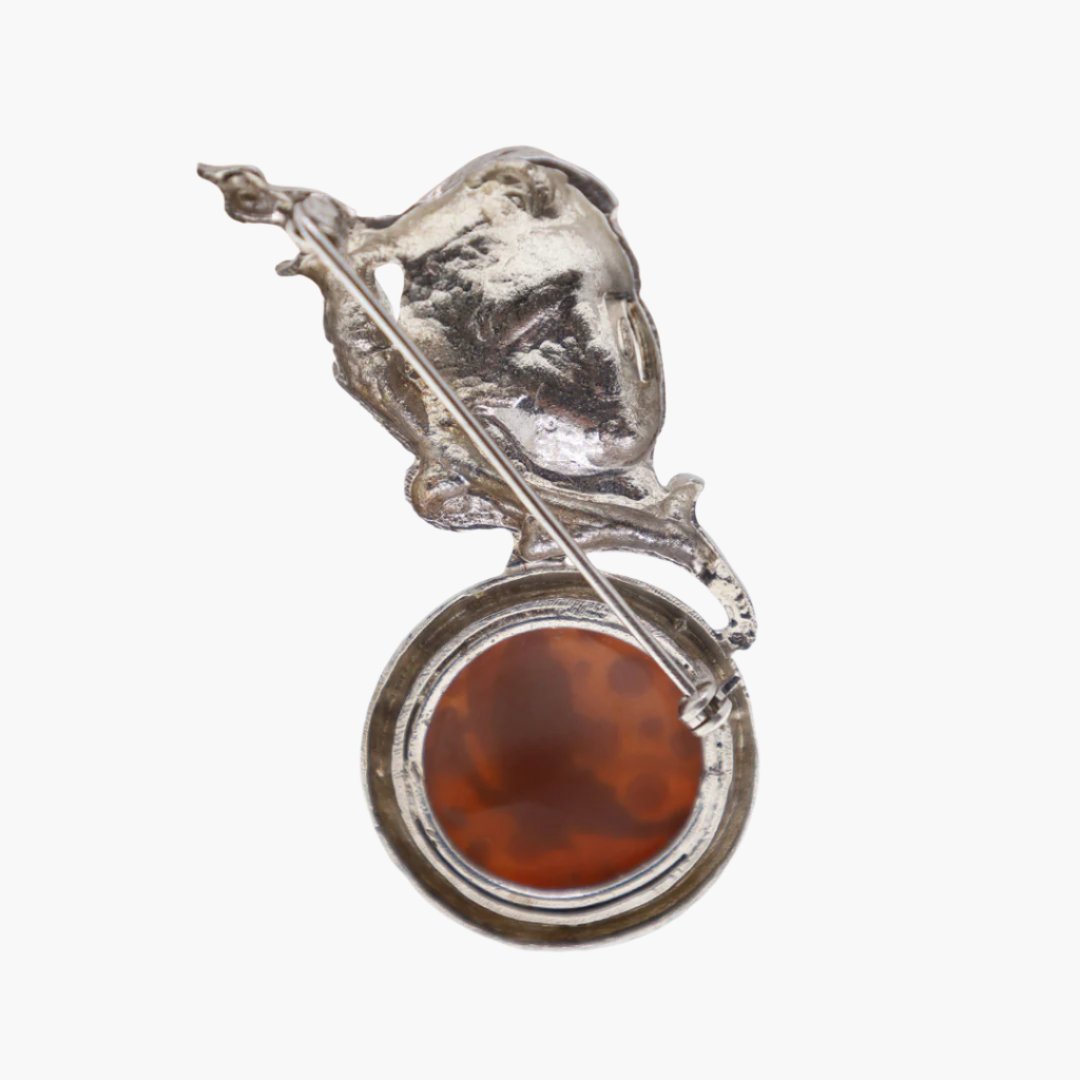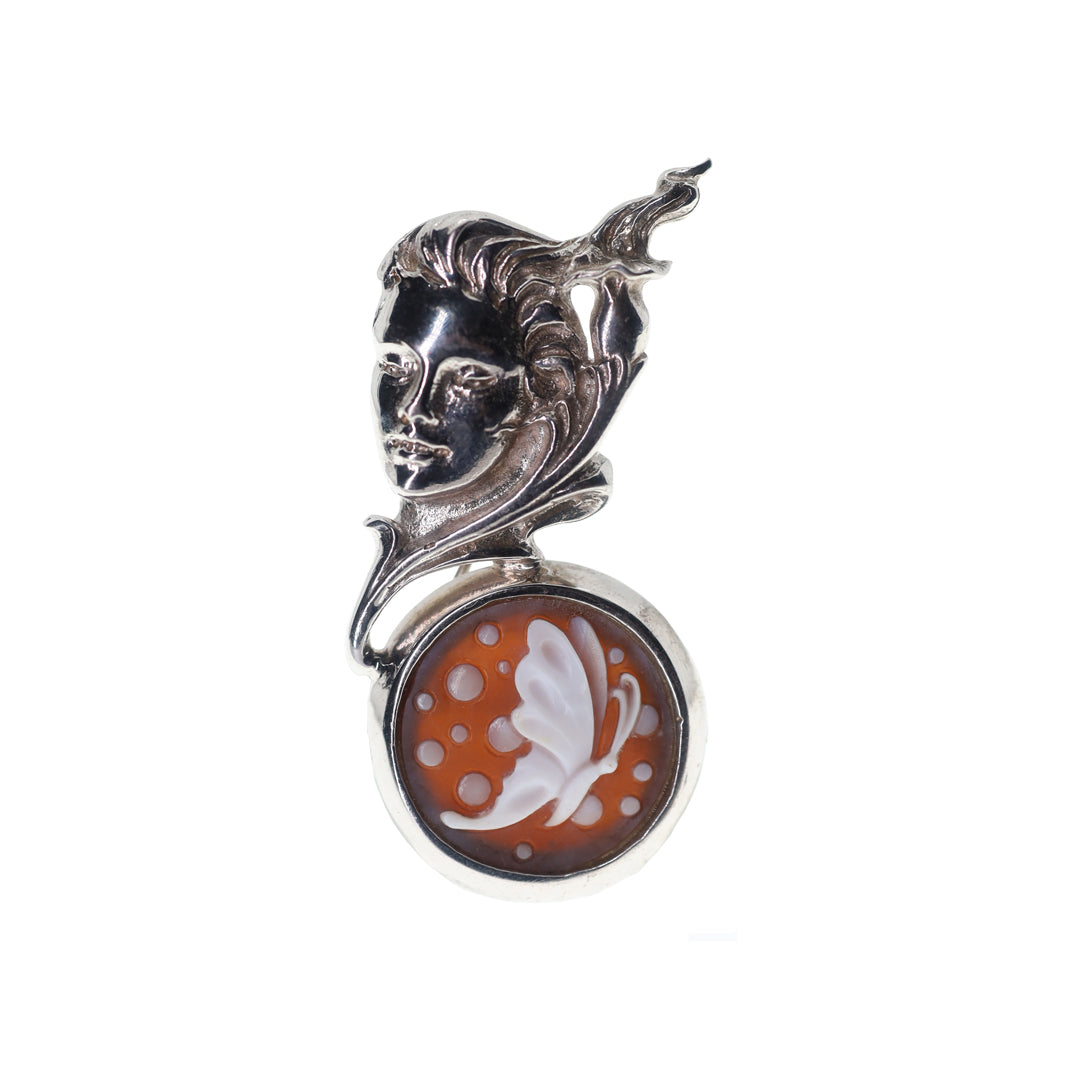 Silver State Lady with Flowing Hair Butterfly Cameo Brooch