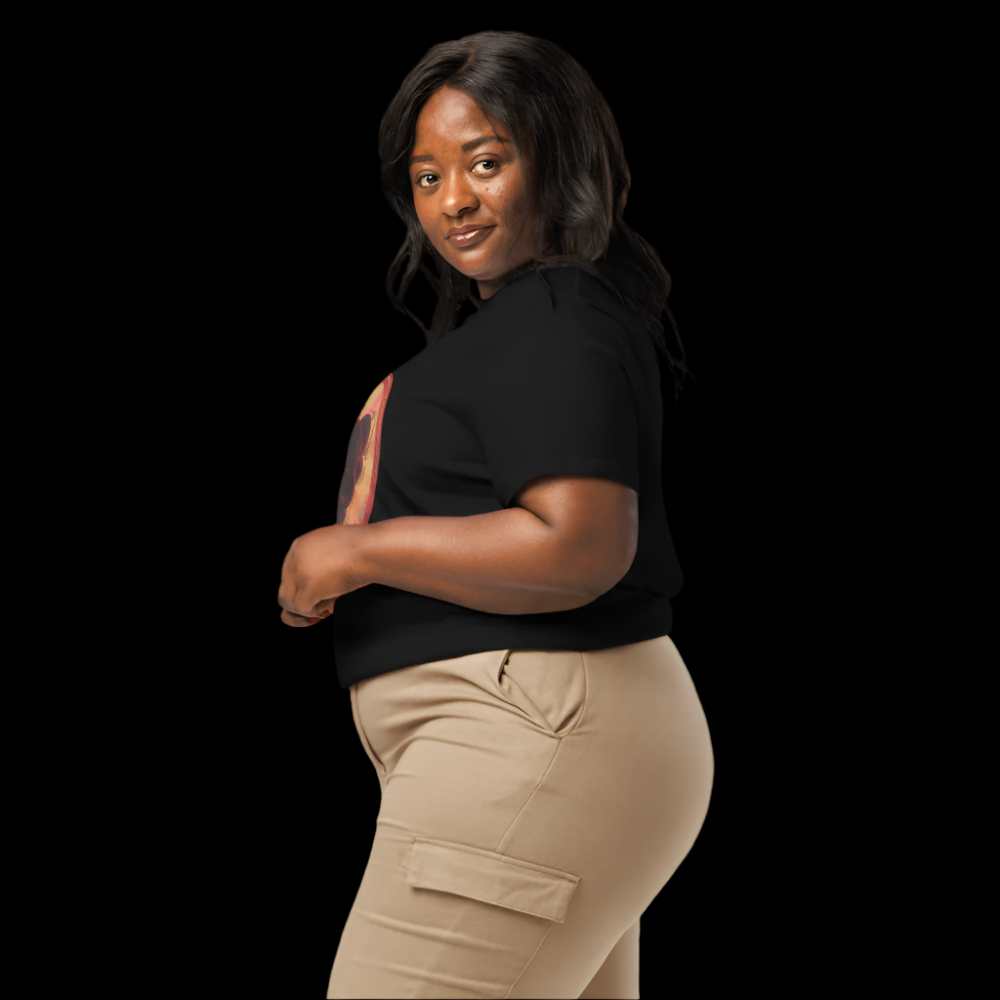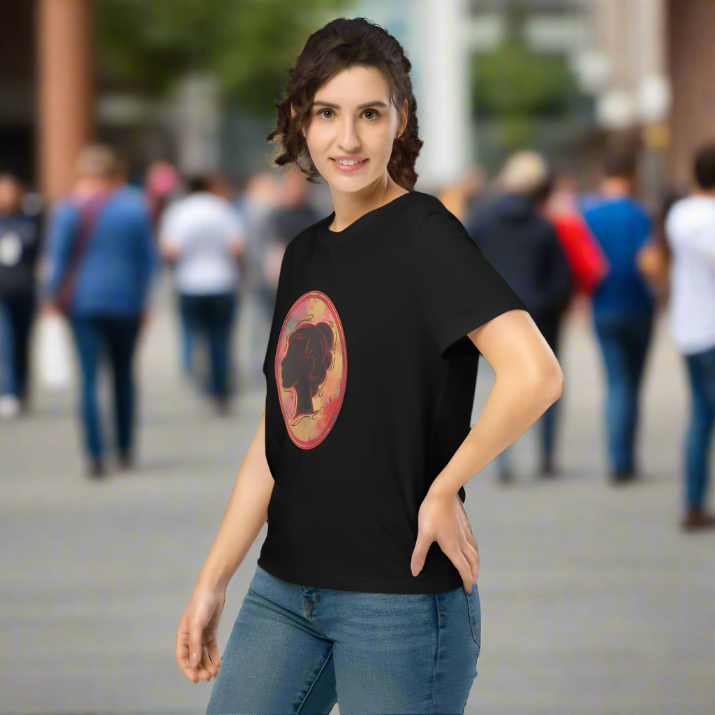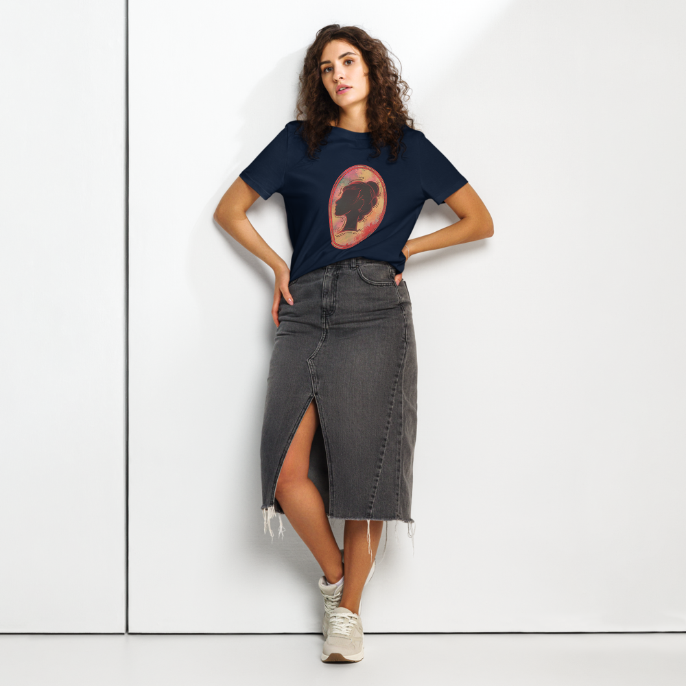This women’s organic tee is designed to flatter your body shape. Made from 100% organic cotton, it offers a premium feel. The ribbed neck adds a polished finish.  Cameo Calamity LLC original artwork!
